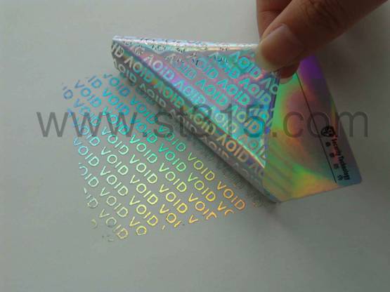 桑泰11P201防偽材料被揭起后,會有彩虹實體的“VOID”字樣(3MM高*11MM寬)轉移到承貼物表面,同時鏤空的“VOID”也會顯現在標簽面材上,不可復原,以示已開啟。有效地阻嚇盜竊、竄貨等不法行為的肆行。