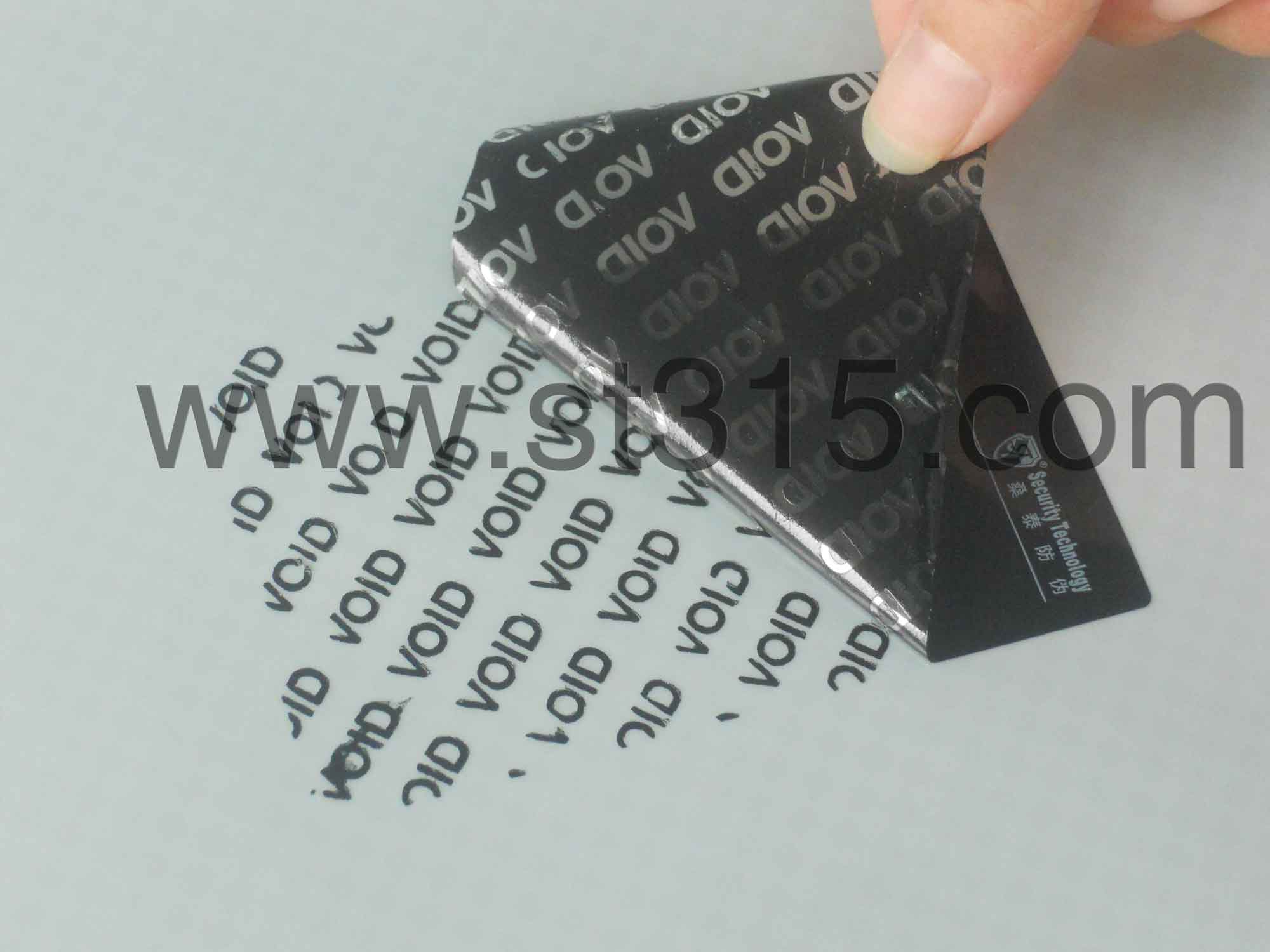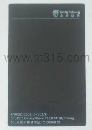 桑泰6P503/R防偽材料被揭起后,會有黑色實體的“VOID”字樣(4MM高*13MM寬)轉移到在承貼物表面,同時鏤空的“VOID”也會顯現在標簽面材上,不可復原,以示已開啟。有效地阻嚇盜竊、竄貨等不法行為的肆行。