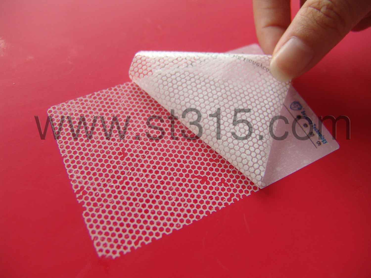 桑泰5H214防偽材料被揭起后,會有白色的“蜂巢”狀轉移到承貼物表面,同時也會顯現在標簽面材上,不可復原,以示已開啟。有效地阻嚇盜竊、竄貨等不法行為的肆行。