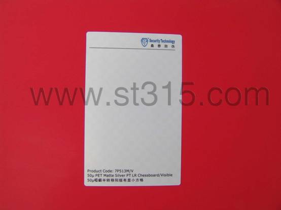 桑泰7P513M/V防偽材料在揭開前, 可隱約看到“方格”均勻分布在材料上;被揭起后,會有銀色實體的“方格”(3MM高*3MM寬)轉移到在承貼物表面,同時鏤空的“方格”狀也會顯現在標簽面材上,不可復原,以示已開啟。有效地阻嚇盜竊、竄貨等不法行為的肆行。