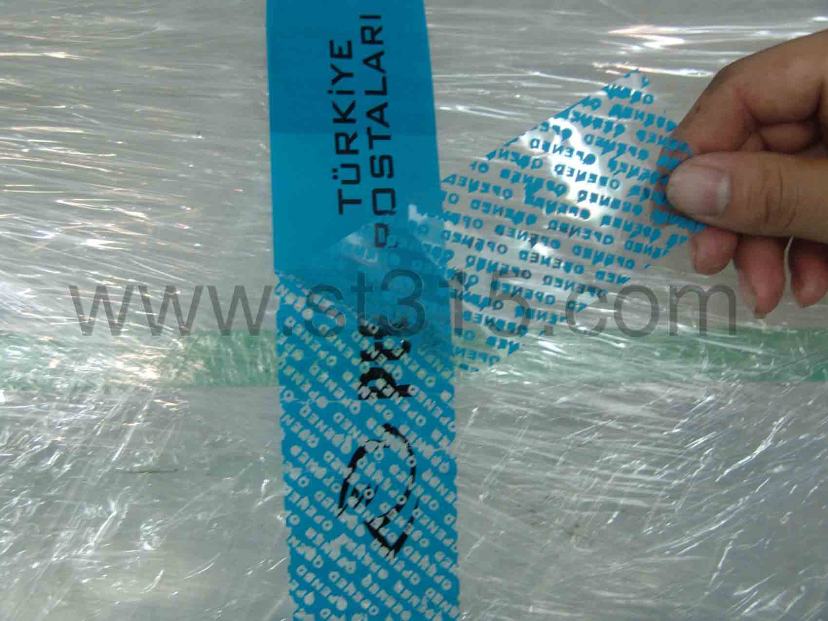 桑泰9T2108T為藍(lán)色全轉(zhuǎn)移型防偽膠帶。 揭起后,會(huì)有藍(lán)色鏤空的“OPENED”字樣轉(zhuǎn)移到箱體表面,同時(shí)也呈現(xiàn)在膠帶面材上,不可復(fù)原,以示已開(kāi)啟。有效地阻嚇盜竊、竄貨等不法行為的肆行。
