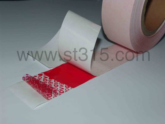 桑泰雙面VOID型雙面膠防偽封條是以PET膜為基材,兩面均涂布有膠粘劑并兩面都復合著底材,且兩面膠粘劑均含有防偽字模信息,主要用于塑料袋和信封上。常規(guī)顏色為紅色和藍色,底材可選用塑料膜或紙類。