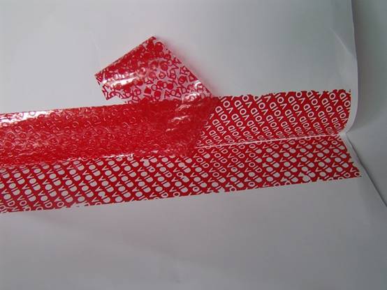 當貼有桑泰雙面VOID雙面防偽封條的塑料袋或信封被打開后,無論從封條的哪一面揭起,封條的兩面都會有“VOID”字樣同時出現在防偽膠帶和膠袋/信封上,不可復原,以示已開啟。有效地阻嚇盜竊、竄貨等不法行為的肆行。