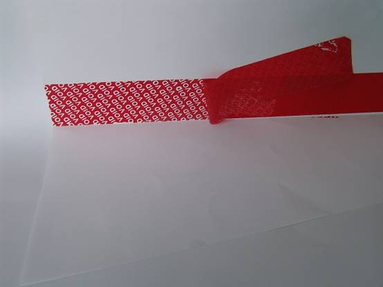 當(dāng)貼有桑泰雙面防偽膠帶的塑料袋或信封被打開(kāi)后,會(huì)有“VOID OPEN”字樣同時(shí)出現(xiàn)在防偽膠帶和膠袋/信封上,不可復(fù)原,以示已開(kāi)啟。有效地阻嚇盜竊、竄貨等不法行為的肆行。