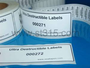 當(dāng)易碎標(biāo)簽一旦被揭起,標(biāo)簽本身將立即破壞而變成錯亂無章的小碎片。破壞的痕跡不可復(fù)原,有效地阻嚇了偷竊、未經(jīng)許可拆卸物品零部件等不法行為,保證了產(chǎn)品的安全性。