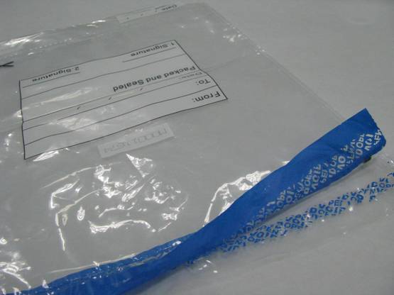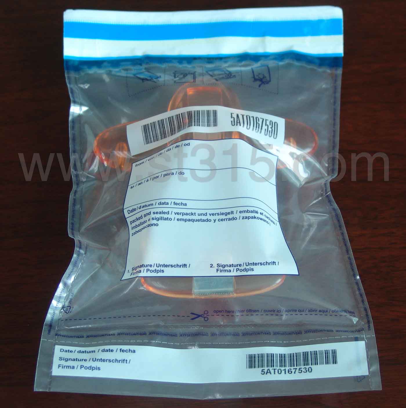 當安全密封袋一旦被打開,隱含的文字或圖案就會立即顯現在防偽封條上,并且永久的殘留在袋子上,以示已開啟。可有效保護內載物件的安全性。